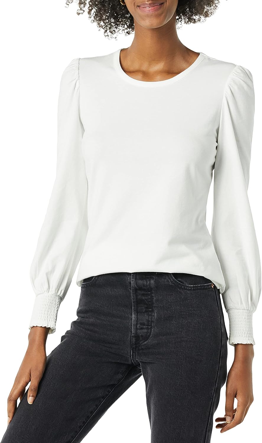 Amazon Essentials Women’s Long-Sleeve Crewneck Smocked Cuff T-Shirt