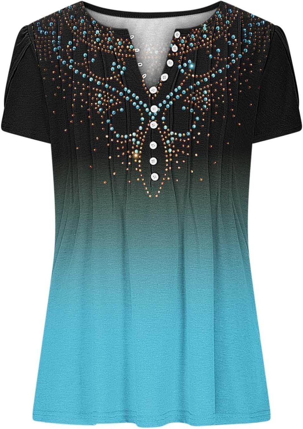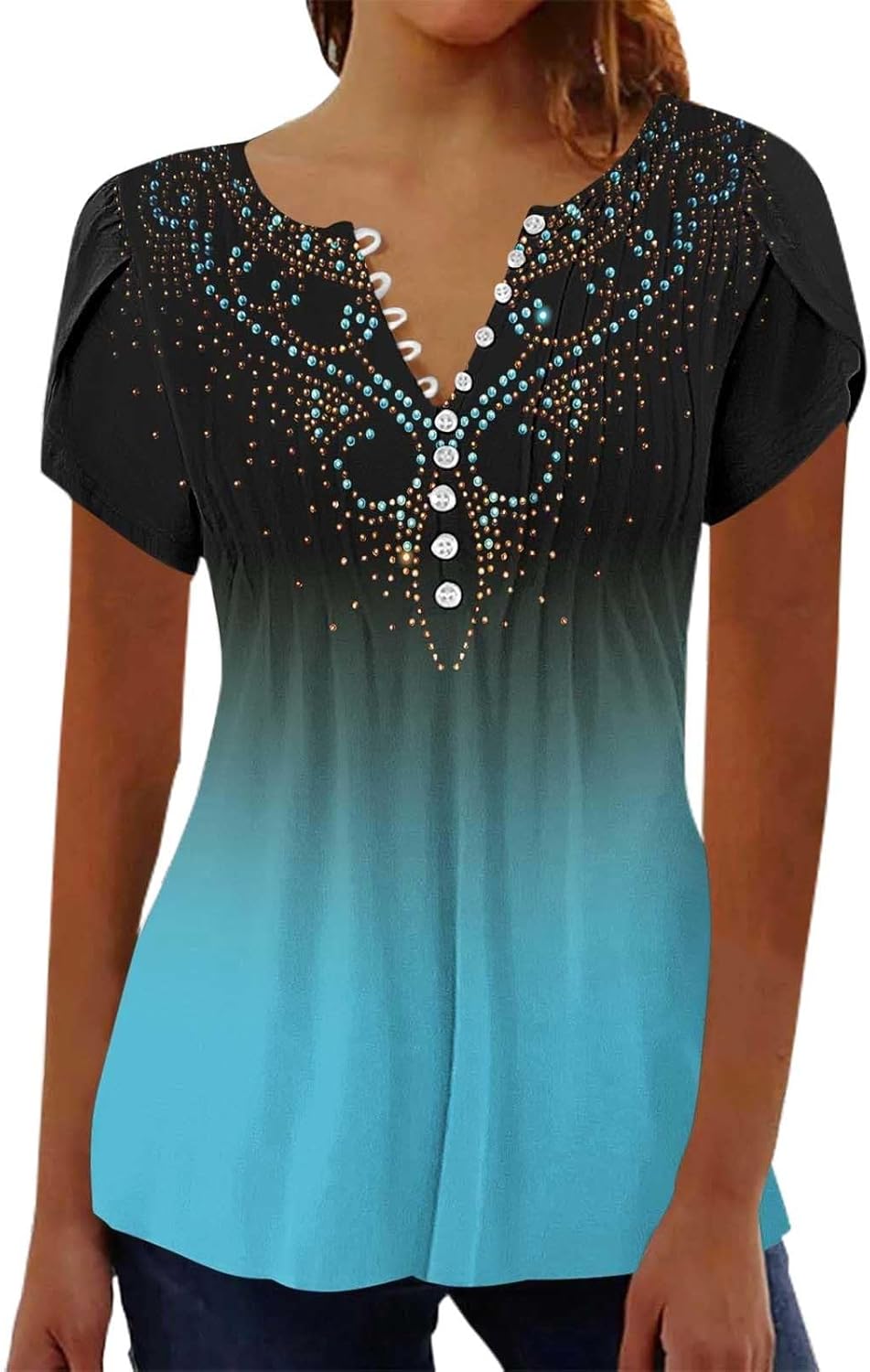 CHUOAND Womens Summer Tops 2025 Button V Neck Tunic Shirts Graphic Tees Short Sleeve Casual Floral Printed Trendy Blouses