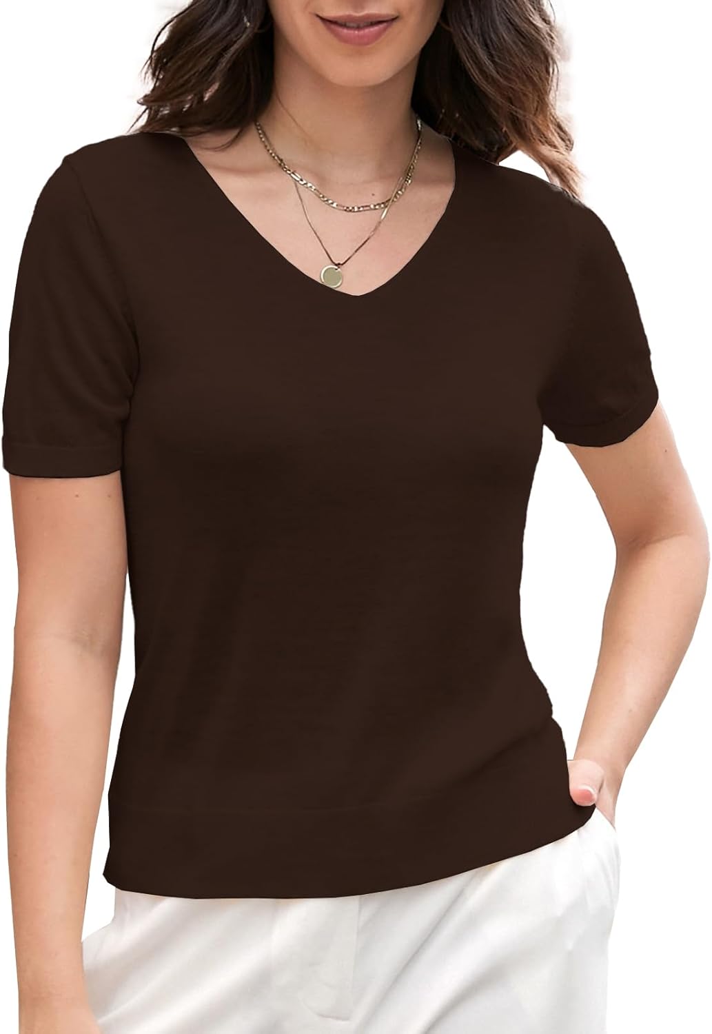 The video showcases the product in use.The video guides you through product setup.The video compares multiple products.The video shows the product being unpacked. DAIMIDY Women’s Short Sleeve V Neck Sweaters Merchant Video