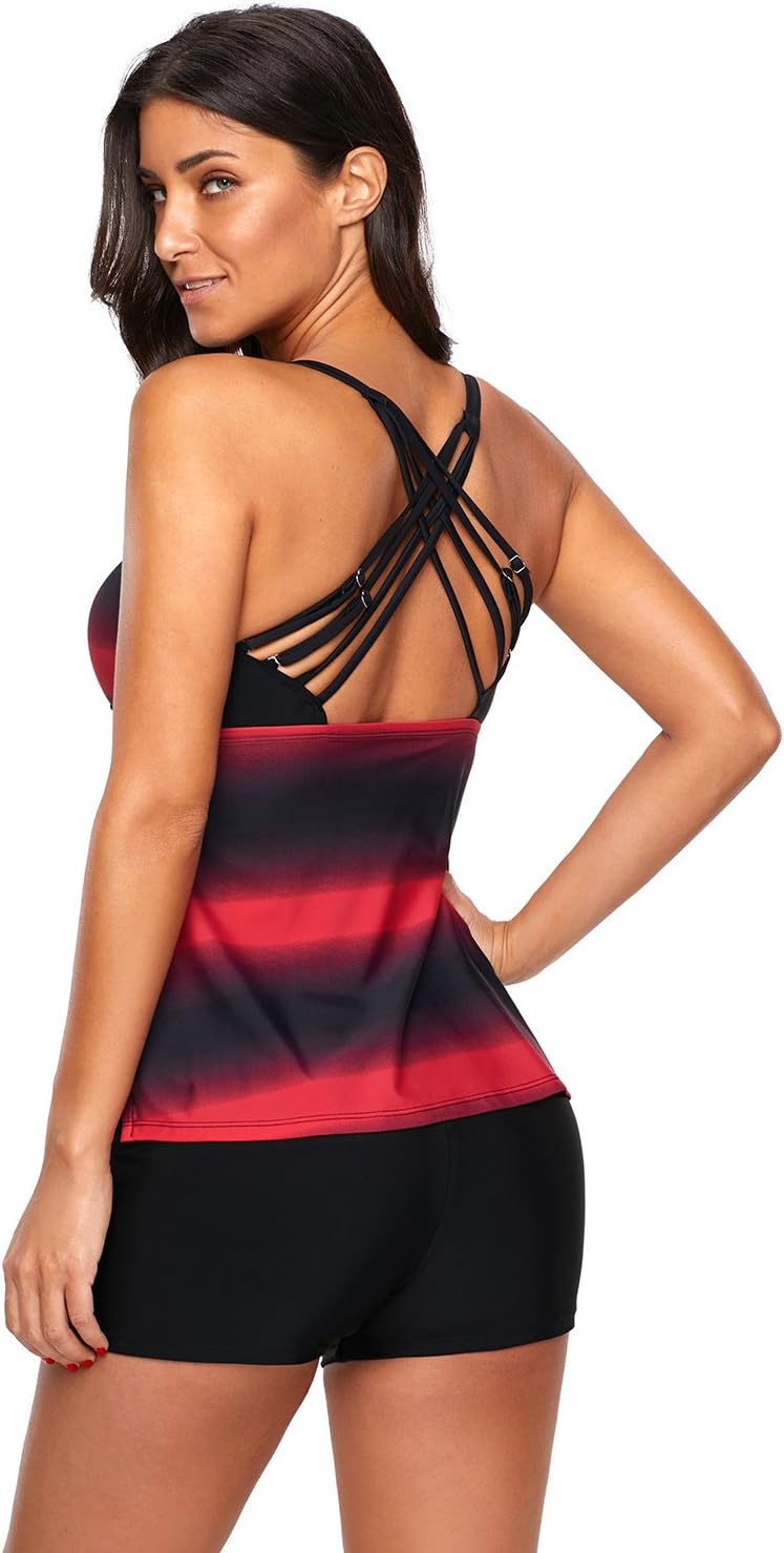 Dokotoo Womens Criss Cross Back Color Block Swim Suits for Women 2024 Tankini Top with Boyshorts Swimsuits (S-XXXL)