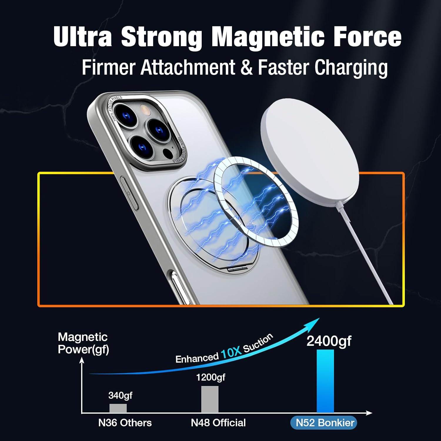 👍[New Revolutionary Design]: Bonkier for iPhone 16 Pro Max case features a new and exclusive design that integrates magnets, a 360° swivel invisible kickstand, and more into a single case that lets you hold it anywhere, at any angle, or attach it to a car mount,and the new upgraded magnets are 200% more powerful, instantly charging your phone up to several times faster in this case.