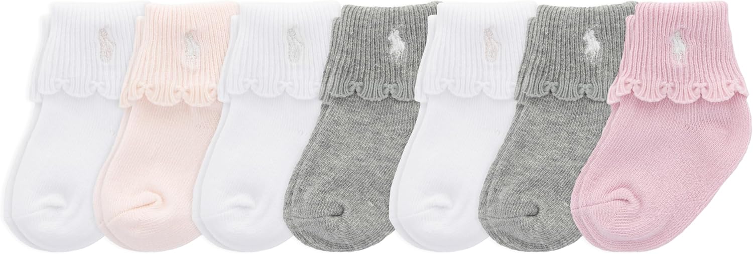 Discover timeless style and comfortable fit in every pair of socks from Polo Ralph Lauren. This six-pack of socks for baby boys features the Ralph Lauren logo with a gripper texture on the sole for enhanced traction. Soft, sustainable yarns are knit with a hint of stretch and cushioning to comfort little feet. Each pair is embroidered with our signature Pony. Growing feet deserve the comfort of premium socks. Kids’ socks are the quintessential gift for birthdays, Easter, back to school, Christmas or just because. Explore the fun designs and superior quality of Polo Ralph Lauren’s ultra-soft socks that your son, daughter or grandchildren will enjoy.