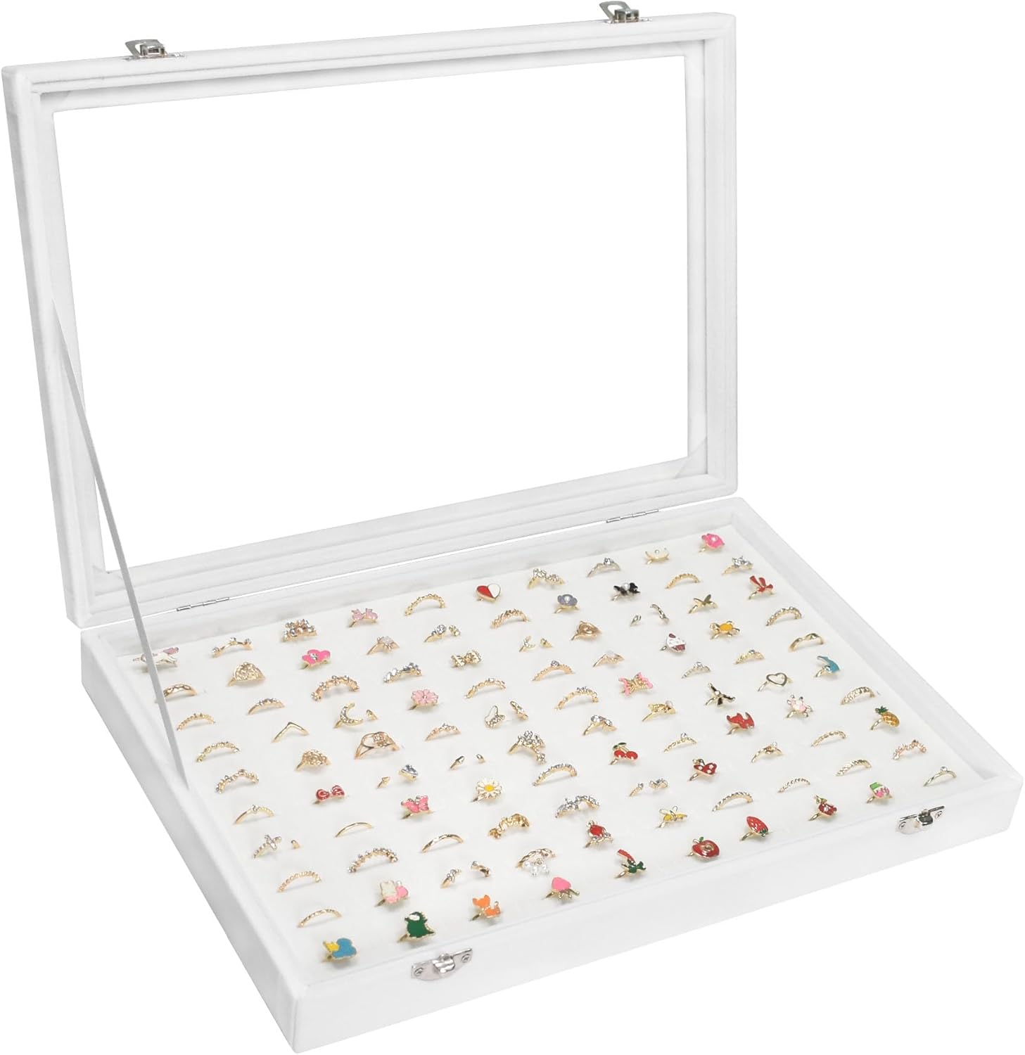 Design concept: The Vicoter 100 slot jewelry display and storage box can effectively distinguish rings, earrings, and other accessories, and protect your precious jewelry from dust and wear. Through the transparent glass cover design, you can quickly discover the jewelry you are looking for. Two safety locks can effectively prevent the cover from being easily opened.