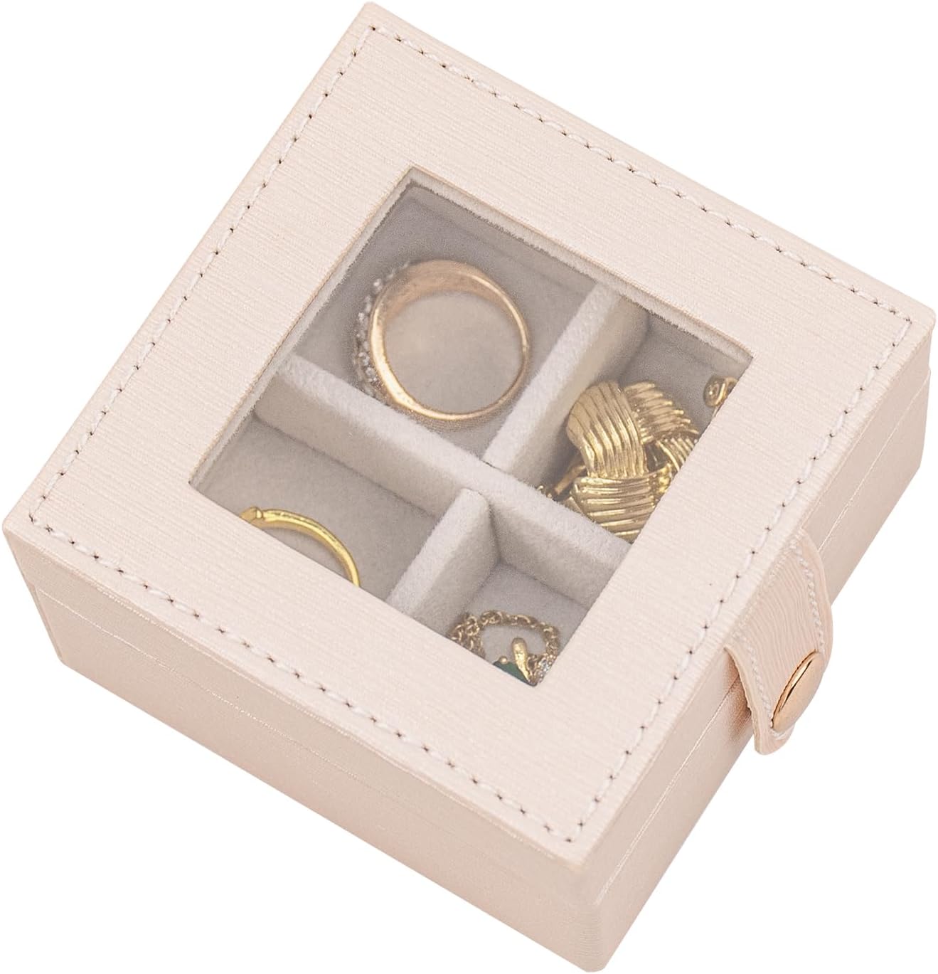 Glass Top:You can see the earrings, rings, etc. stored in this small jewelry box through the top glass. The glass is embedded in the leather top and will not break easily even if it falls.
