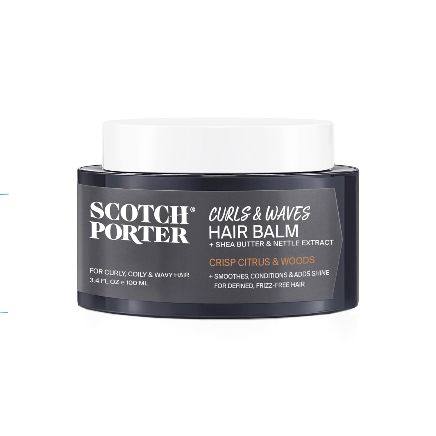 Scotch Porter Curls & Waves Smoothing Hair Balm for Men | Instantly Controls, Moisturizes, Defines & Adds Shine | Free of Parabens, Sulfates & Silicones | Vegan | 3.4oz