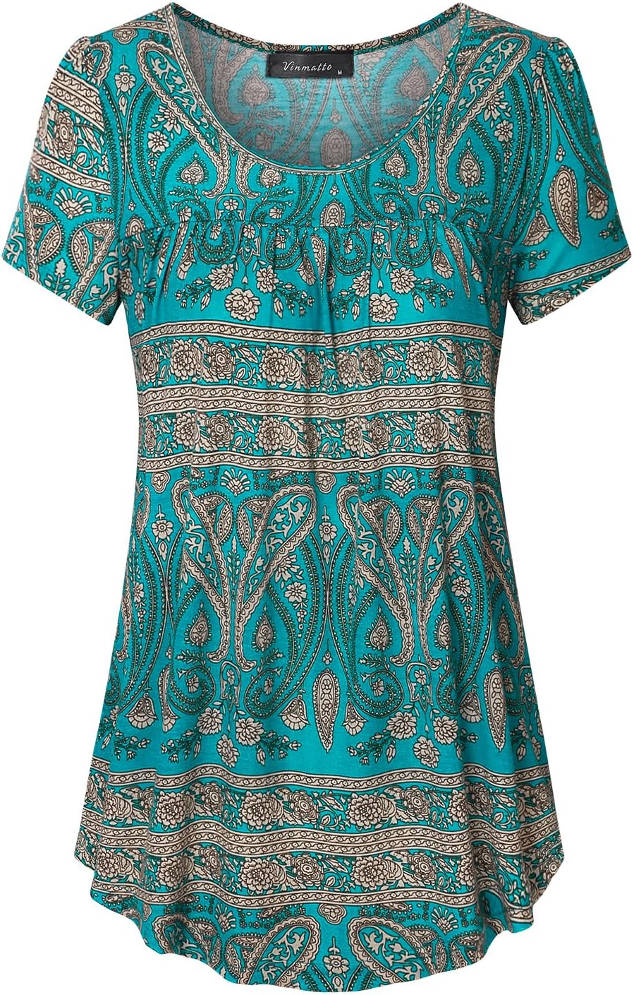 Customers find the tunic flattering, noting it pairs well with dress pants or jeans and has a modest neckline. The fabric receives positive feedback for being soft, medium-weight, and holding up well after multiple washesings. While some customers find the sizing accurate, others mention it runs big. The material quality receives mixed reviews, with some praising it while others find it very thin.